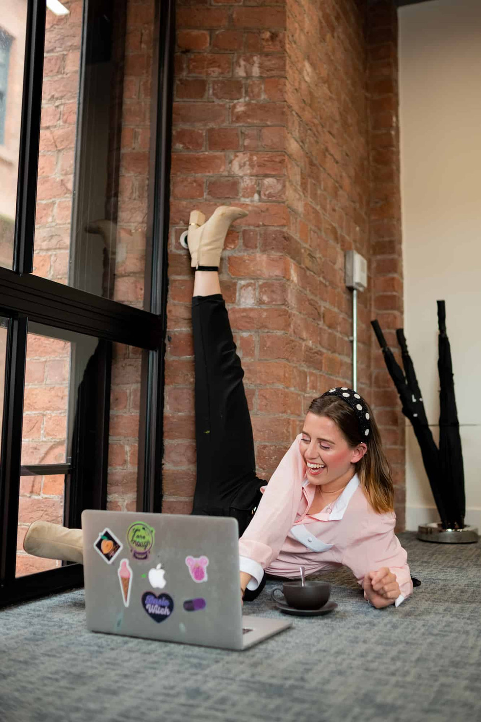 What a day this was! When we started planning this shoot I immediately knew we were going to have a blast. It would be full of color, creativity, and FUN - some of the best ingredients for a brand shoot. We started the day at a beautiful co-working space in Liverpool's historic Albert Docks, and ended at a lovely beach in the Wirral for sunset, visiting a cafe, forest, and garden in between!